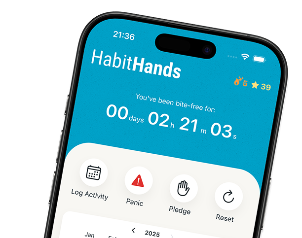 "I’ve tried to stop nail biting on my own so many times, but nothing stuck. Habit Hands makes it easy to build awareness and celebrate small victories. The journaling helps me understand why I do it, not just that I do it. Highly recommend to anyone struggling with